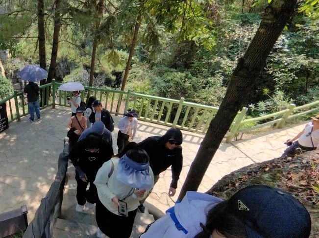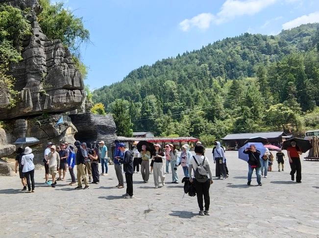 大家換乘地面纜車及觀光車,到達(dá)七星寨景區(qū)口,后乘坐索道進(jìn)入七星寨景區(qū)。七星寨景區(qū)中天坑、地縫、絕壁、峰叢、巖柱群、溶洞、暗河等地質(zhì)景觀一應(yīng)俱全,被稱為“喀斯特地形地貌天然博物館”。