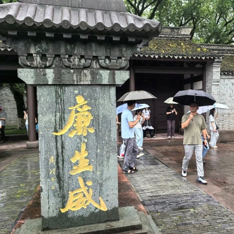 帶著從真理園汲取的精神養(yǎng)分,黨員同志們繼續(xù)冒雨前行,抵達以清廉文化著稱的清風園。雨水洗塵,更映襯清廉本色。大家沿著精心設計的廉政教育路線,認真參觀了古代清官廉吏事跡展區(qū)、廉政文化主題展陳等。一幅幅承載歷史記憶的畫卷、一件件寓意深刻的實物、一個個感人至深的廉潔故事,生動詮釋了“公生明,廉生威”的深刻內(nèi)涵。特別是那些觸目驚心的貪腐案例警示墻,更是發(fā)人深省,為全體黨員敲響了廉潔自律的長鳴警鐘。大家深刻感受到,清廉不僅是中華民族的傳統(tǒng)美德,更是共產(chǎn)黨人必須堅守的政治本色和生命線。通過沉浸式學習,黨員們對加強黨性修養(yǎng)、嚴守紀律規(guī)矩有了更深切的體會。